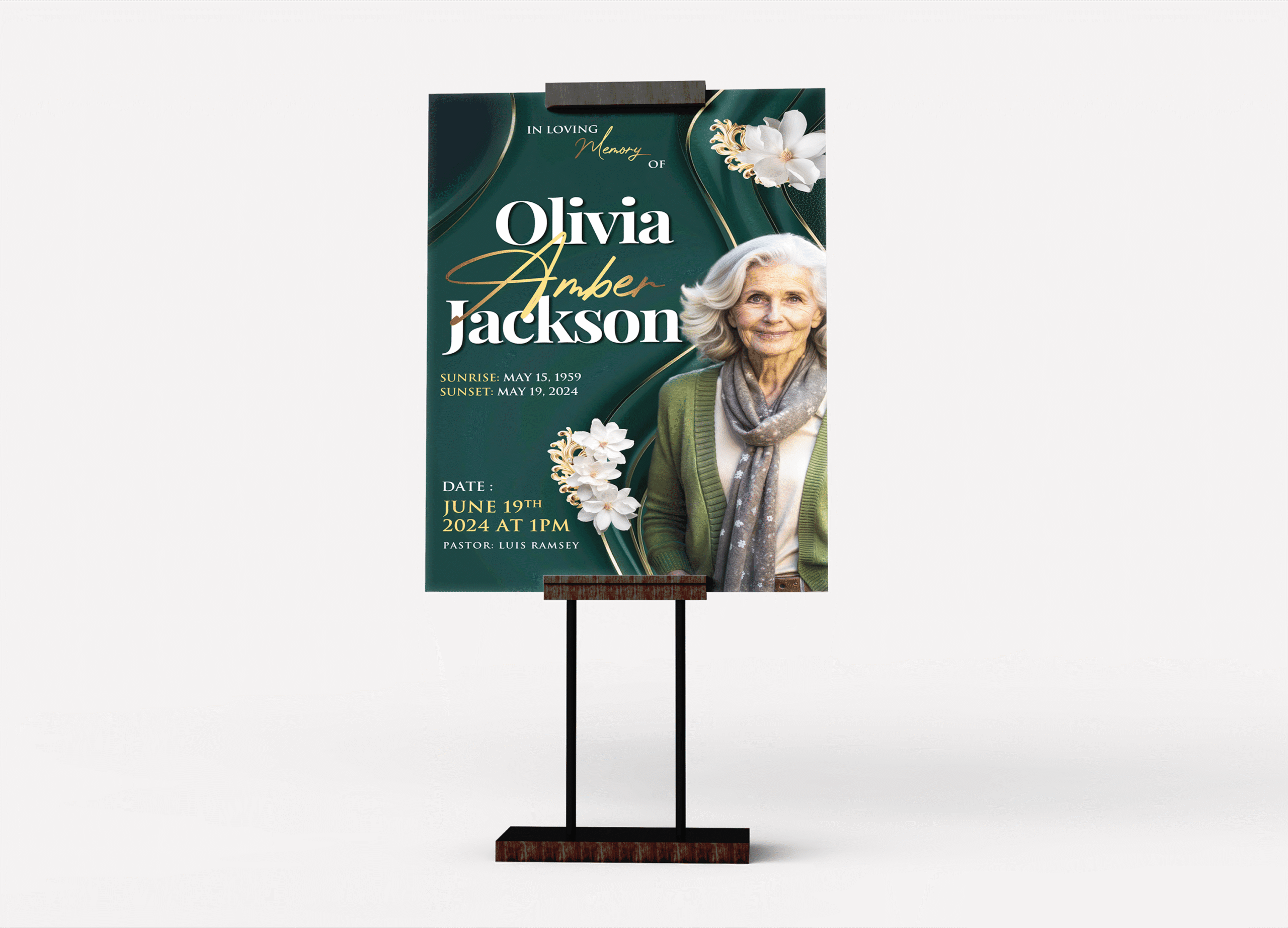 Thoughtfully arranged and crafted with care, the Floral Green collage is ideal for memorial services, celebrations of life, or as a lasting keepsake for family and friends. Each design is customized with your selected photos and personal details to create a tribute that is truly meaningful and unique.