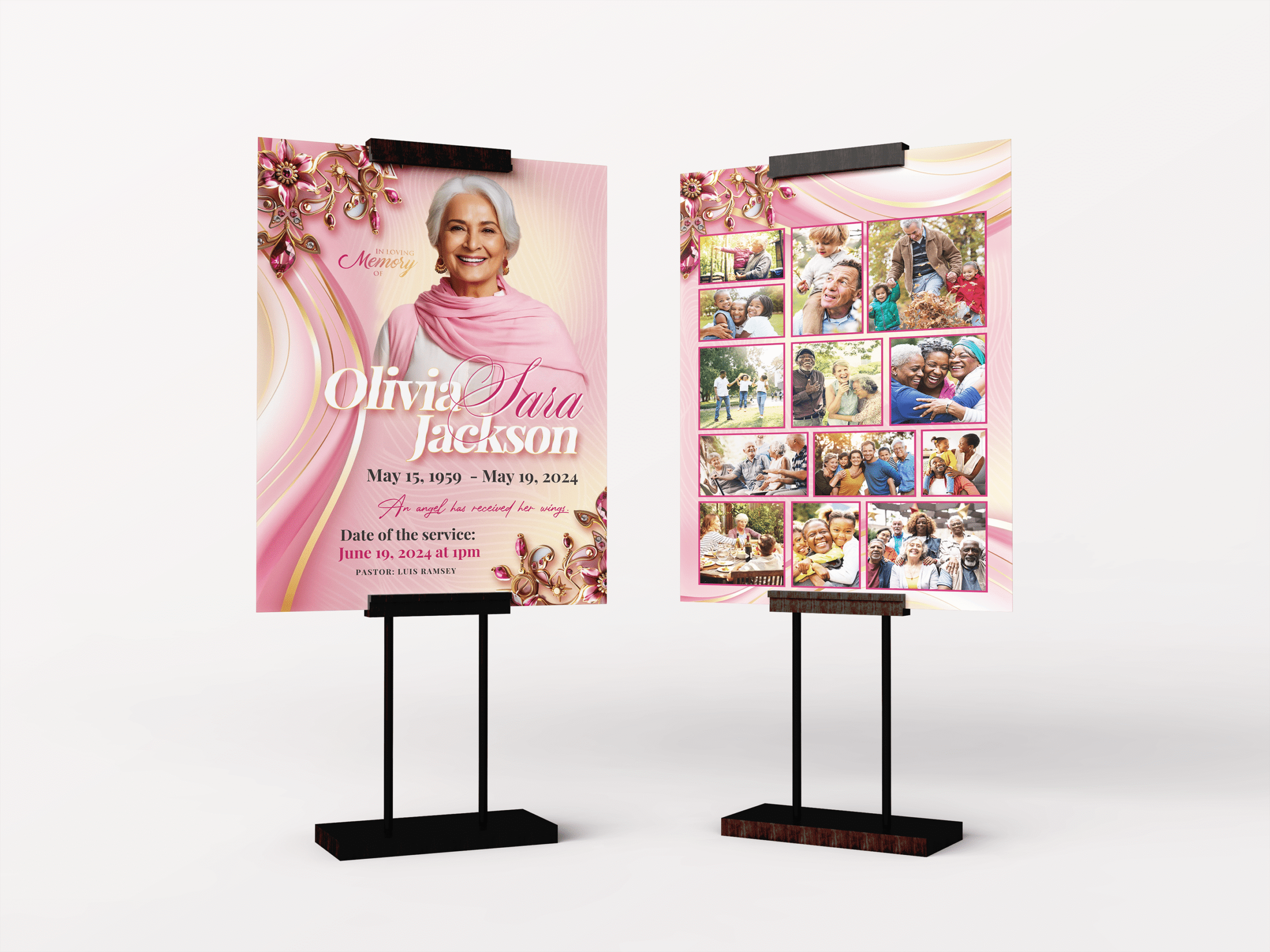 Celebrate a life cherished with the Gemstone Shine Funeral Collage Poster Design — a digitally designed tribute showcasing soft pink and yellow floral gems arranged in a luminous, heartfelt display. This collage brings your favorite memories together in one elegant keepsake, perfect for memorial services or lasting remembrance.