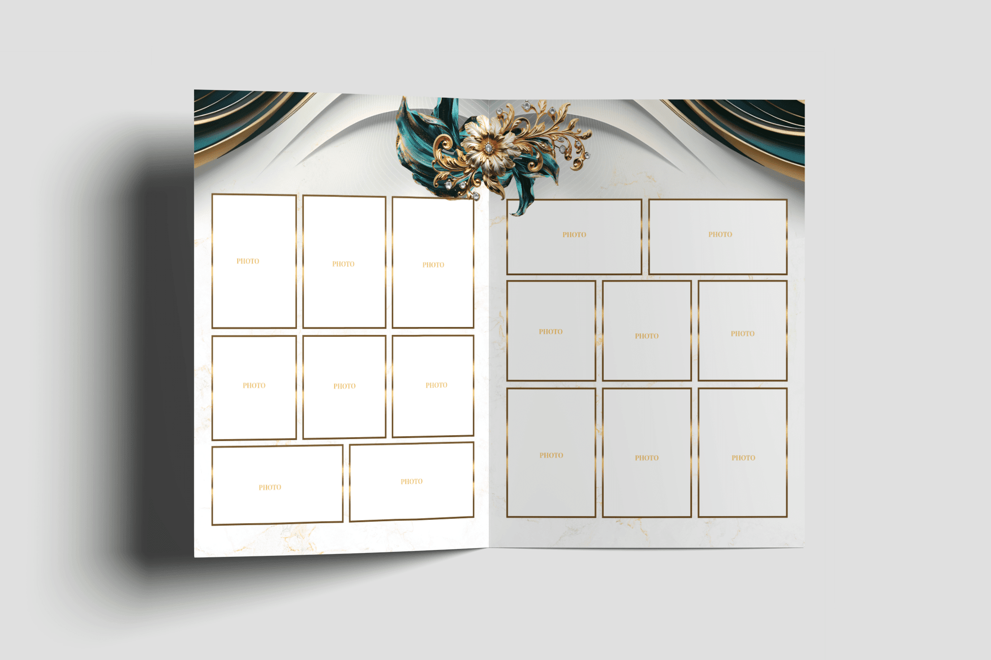 Our deepest condolences on your loss. The Marble Enchantment Funeral Program Design presents a graceful digital memorial booklet featuring a luxurious white and gold marble background accented with elegant green and gold swirls and delicate floral details. This refined design allows you to include photos, obituary, order of service, and personal tributes, creating a beautifully enchanting keepsake.