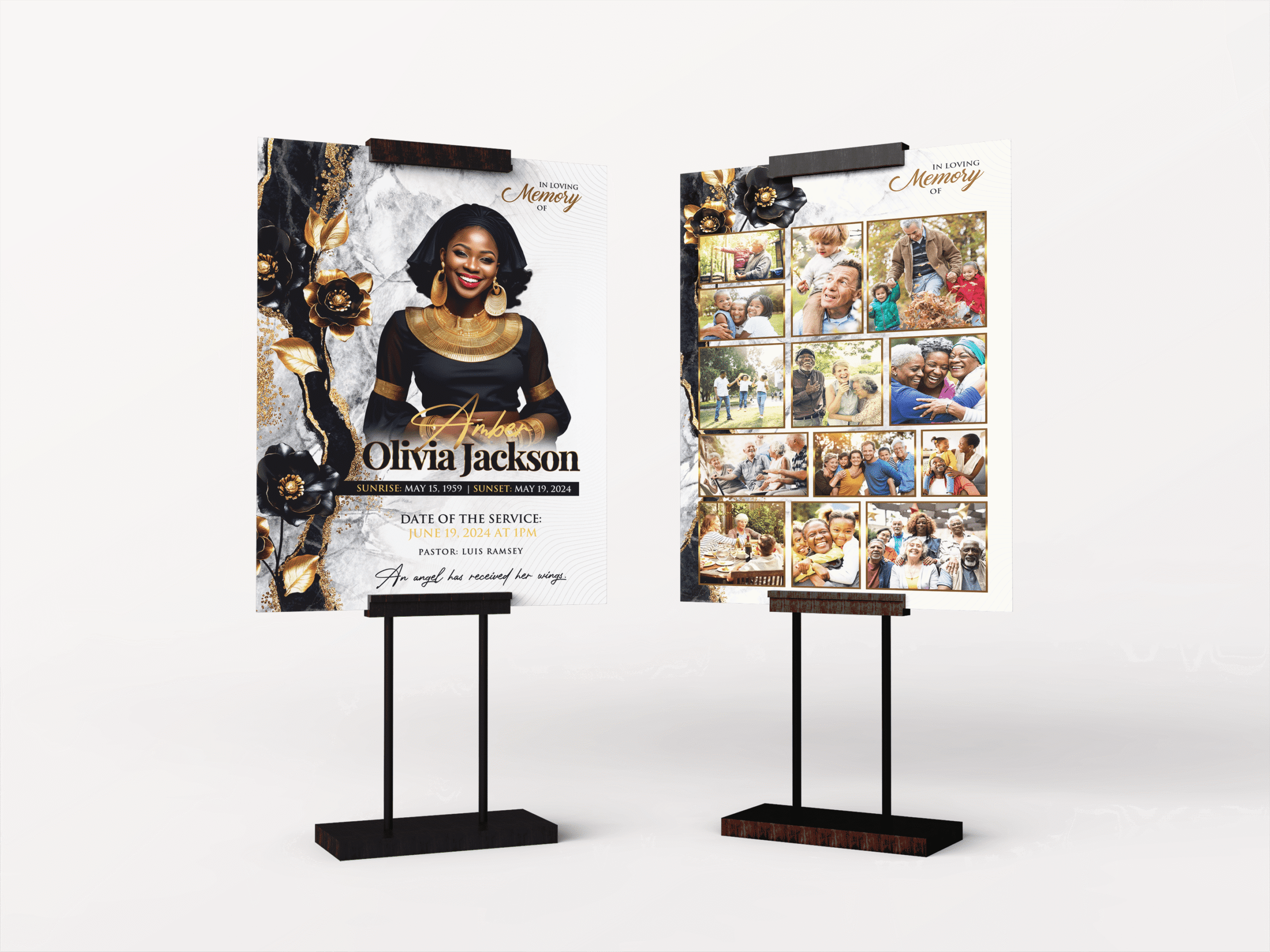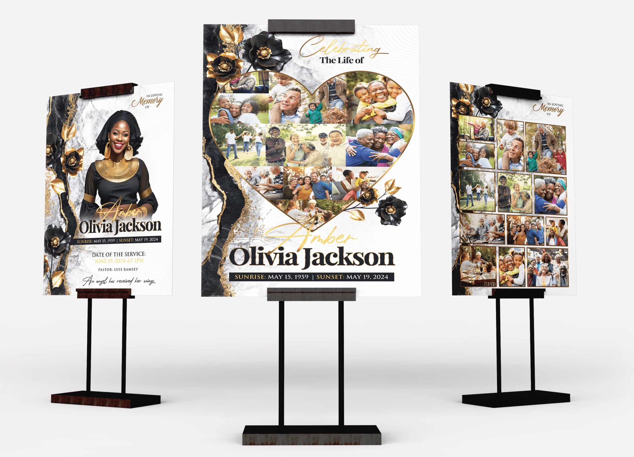 Each poster is personalized with your chosen images and messages, providing a heartfelt display for memorial services or home remembrance.